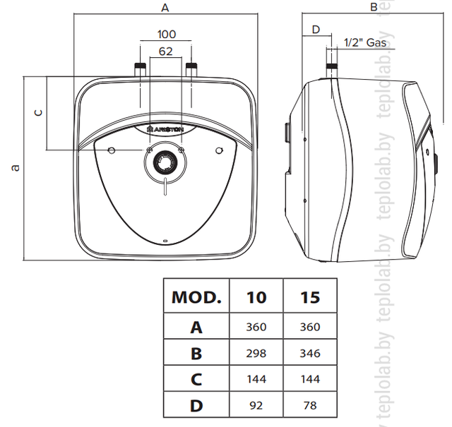 Электрический водонагреватель Ariston Andris Lux UR (Аристон Андрис Люкс), 10 литров, 1,2 кВт, под мойкой