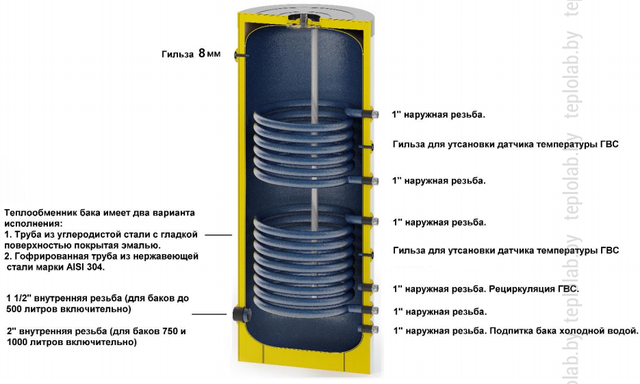 - бак и теплообменники выполнены из эмалированной углеродистой стали;