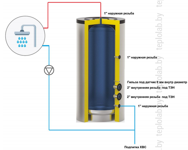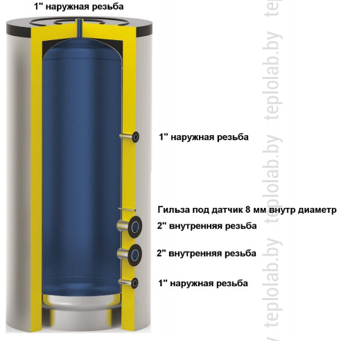 - опционально в состав бака входит защитный магниевый анод (расположен под теплоизоляцией в верхнем куполе);