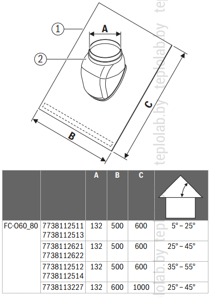 Проход через крышу 25-45° Bosch (Бош) FC-O60_80 DN125 PP