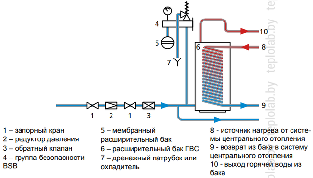 Группа безопасности Afriso BSB предназначена для защиты закрытых нагревателей горячей воды от чрезмерного повышения давления. Оснащена всеми необходимыми элементами для защиты резервуара, то есть предохранительным клапаном, отсечным клапаном, обратным клапаном и манометром.